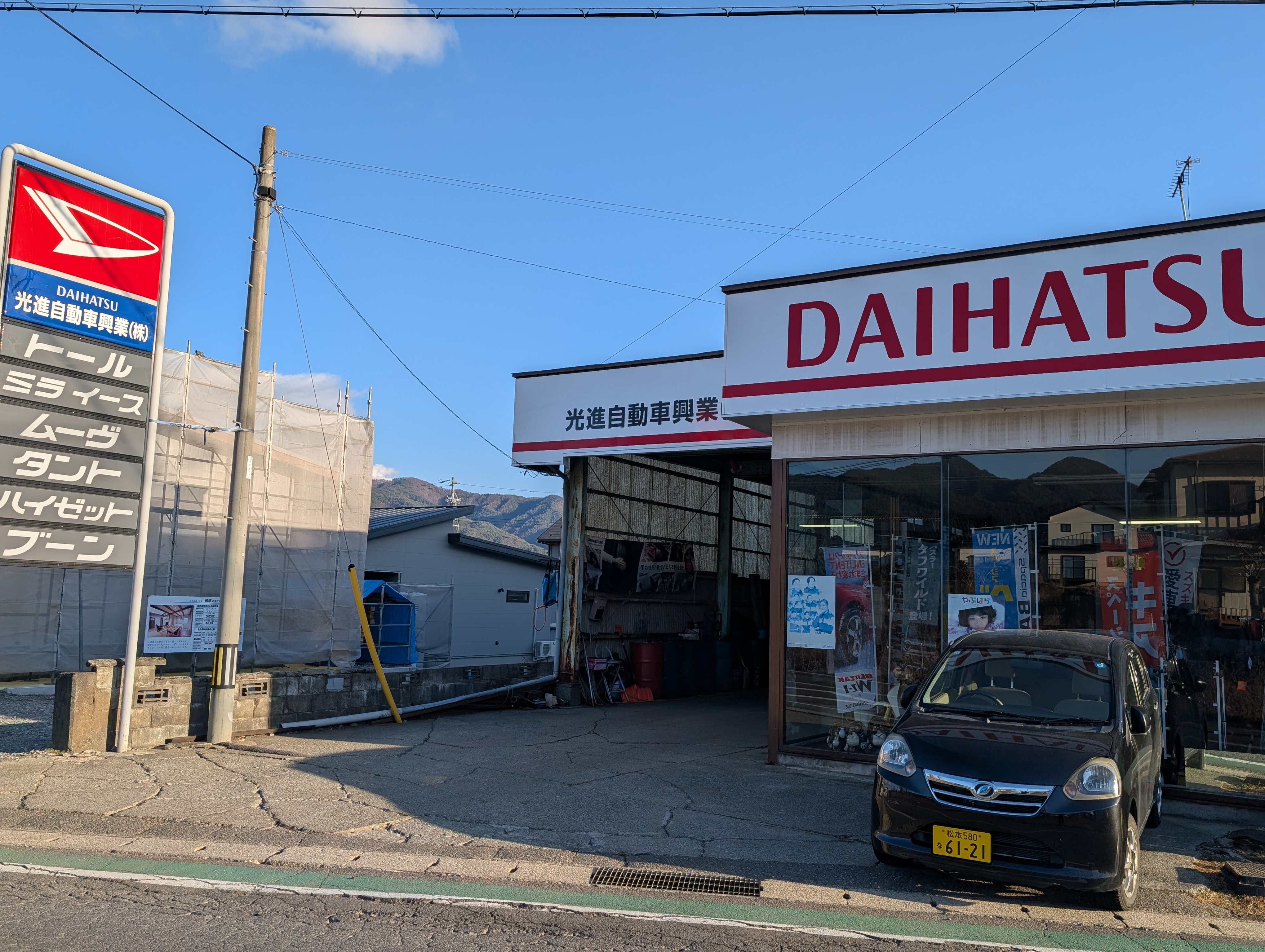 会社概要 社名 光進自動車興業株式会社 代表取締役 竹入 英城 本社所在地 〒399-04280 長野県上伊那郡辰野町大字伊那富3125 TEL. 0266-41-0843 FAX. 0266-41-5765